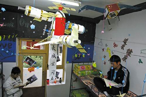 近日,來(lái)自西南大學(xué)植物保護(hù)學(xué)院的6名大學(xué)生用廢舊的塑料瓶、用過(guò)的廢紙片、垃圾箱內(nèi)淘來(lái)的百事貼等廢品將寢室裝飾成了太空艙。其效果照片在網(wǎng)上一經(jīng)發(fā)表,立即引來(lái)大量點(diǎn)擊,網(wǎng)上熱議其為山寨版“神七艙”。
