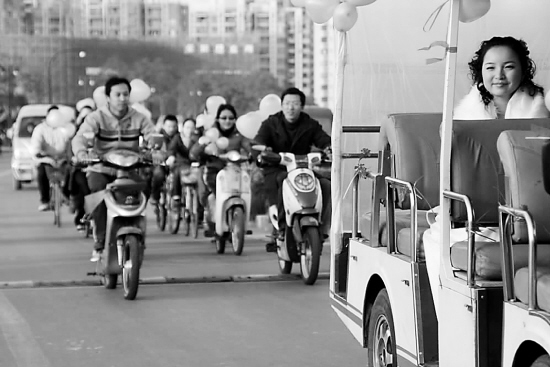 昨天(12月7日),浙江大學(xué)校網(wǎng)CC98的校園信息分論壇里有個帖子非常火爆,點擊過萬,成了校園的熱門話題。發(fā)帖人ID是cjmaggie,說是上周五浙大藥學(xué)院一博士生舉行校園婚禮,載新郎新娘的婚車不是寶馬、奔馳,而是浙大紫金港校區(qū)的觀光車,其余的車子均是自行車和電瓶車,婚禮車隊在紫金港校區(qū)逛了一圈。這樣的婚禮樸素得讓人羨慕,這個帖子掛上去沒多久,就成了熱帖,大家紛紛表示祝福。