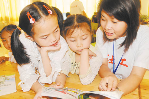 7月5日,西南石油大學(xué)社會(huì)工作專業(yè)2009屆畢業(yè)生徐婷婷在給安縣秀水鎮(zhèn)的小朋友講故事。安縣紅十字會(huì)社工服務(wù)中心成立于去年10月,中心共有7名社工,其中6名是來自該校的社會(huì)工作專業(yè)畢業(yè)生。今年西南石油大學(xué)共有40余名社會(huì)工作專業(yè)的畢業(yè)生,80%在地震災(zāi)區(qū)從事社會(huì)工作。