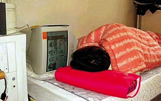 宿舍內(nèi)還有另外兩個室友留校,不過他們每天早出晚歸都很忙。沒過幾天,小謝就開始感覺到寂寞,自己好像被人遺忘了。呆在宿舍的生活也毫無規(guī)律,每天睡到中午一點左右,醒來時,空蕩蕩的宿舍里僅剩下他一個人,剛爬下床還沒來得及去洗手間,第一件事就很順手地打開電腦。隨便吃一包泡面,就開始了一天的電腦生活。晚上七點吃晚餐,有時泡面解決。玩電腦到深夜是必然的事,所以不能沒有宵夜。有時班上總會有男生煮東西,會一起吃,不然隨便吃點零食充饑。