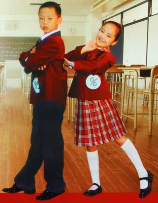哈爾濱市確定的新款學(xué)生裝上縫制了統(tǒng)一標(biāo)志———“向上一族”。標(biāo)志外形為歐式城市風(fēng)格,上端有北國冰城的象征———雪花圖案。標(biāo)志內(nèi)部設(shè)計(jì)成白色的鴿子演化成一本展開的書,背景用暗紅色的色塊寓示“書山有路勤為徑”,象征著全市中小學(xué)生積極向上,哈市教育和諧、蓬勃發(fā)展。