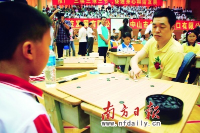前日,“中國移動(dòng)杯”中山市首屆中小(幼)學(xué)生智力運(yùn)動(dòng)會(huì)在中山市一中正式拉開帷幕,我國國際象棋大師謝軍、圍棋大師馬曉春和中國象棋大師呂欽來到現(xiàn)場并與中山小棋手進(jìn)行了車輪表演賽。
