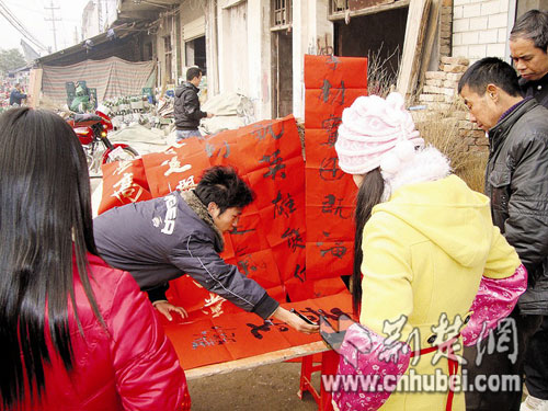 成家良則顯得很樂觀。他估計,接近年關的時候,這些春聯(lián)的銷量就會漸漸上去。