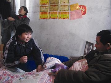 就讀于武漢市體育館小學(xué)六年級(jí)的少年許春寒,有一個(gè)困難的家。爸爸許和勝今年45歲,早年下崗,6年前查出患有肝硬化;媽媽韓愛均今年41歲,一直無業(yè),家里靠吃低保維生。