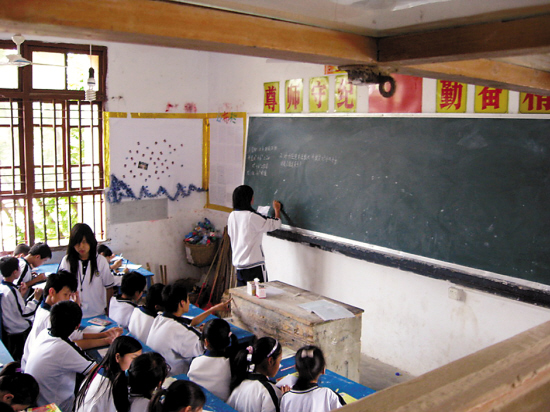 昨天下午3時(shí)許,羊城晚報(bào)記者來(lái)到甲子第一中學(xué)。下午第二節(jié)課的上課鈴恰好敲響,在操場(chǎng)課間休息的學(xué)生們紛紛跑回教室,也有不少學(xué)生磨蹭著不肯進(jìn)去。羊城晚報(bào)記者從教學(xué)樓的一樓走至三樓,只見(jiàn)不少教室均看不到老師在授課,學(xué)生們被安排自習(xí),有班干部在黑板上抄寫(xiě)練習(xí)題。“有沒(méi)有老師給你們上課呀?”有幾個(gè)靠門(mén)口的同學(xué)搖搖頭,稱他們從早上開(kāi)始就自習(xí)了。
