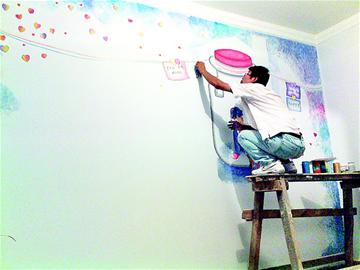 “傳統(tǒng)裝修視覺上平面、乏味,而墻繪卻可以營造出立體感,個性十足!笔袌稣{(diào)查后,陳斌決定創(chuàng)辦一個墻繪工作室,既能發(fā)揮自己的美術(shù)專業(yè)專長,又能實現(xiàn)創(chuàng)業(yè)夢想。同學(xué)武杰一拍即合,兩人果斷籌集了1萬元啟動資金,并邀請劉慧等3名女同學(xué)加入進來。今年5月17日,5位大學(xué)生的工作室正式成立。