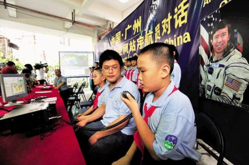 本報(bào)訊 記者蔡惠中攝影報(bào)道:昨日北京時(shí)間16時(shí)26分02秒,一個(gè)電波由廣州市同福中路第一小學(xué)的業(yè)余電臺(tái)發(fā)出,與正飛越廣州上空的國(guó)際空間站的電臺(tái)聯(lián)通上了!這也是我國(guó)小學(xué)生第一次舉辦的國(guó)際空間站業(yè)余無(wú)線電通訊計(jì)劃的活動(dòng)。全程歷時(shí)8分30秒,學(xué)生們提出了20個(gè)問題。