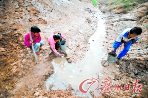 中莊小學(xué)算是距離水源比較近的學(xué)校,走逾一公里的山路就能取水。水源是山溝里一條渾濁的小溪,中莊小學(xué)高年級(jí)的學(xué)生要輪流到山溝里抬水。學(xué)校老師說(shuō),這樣的水是不能飲用的,只能用于灑水。