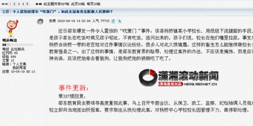 19日晚,有網(wǎng)友將此事發(fā)帖在紅網(wǎng)論壇上,立即引來眾網(wǎng)友熱議,已有7萬多網(wǎng)友點擊關注,同時也引起當?shù)亟逃块T關注。據(jù)瀟湘晨報滾動新聞記者了解到,目前,此事已報案,當?shù)亟逃块T和警方就此事展開調(diào)查。