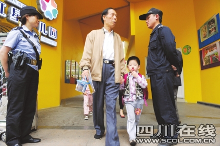 成華警方表示,繼對轄區(qū)學(xué)校實行“一校一警”后,從昨日起,轄區(qū)內(nèi)所有幼兒園也安排了警察執(zhí)守上下學(xué)時段。執(zhí)勤民警佩帶了伸縮警棍、催淚瓦斯和手銬等單警裝備。該區(qū)目前還啟動了社區(qū)保安聯(lián)動機制,同時在校內(nèi)外安裝監(jiān)控、聯(lián)網(wǎng)報警系統(tǒng)等。