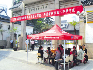 每年的高考,在大多數(shù)人的印象中,孩子在室內(nèi)考,家長在室外“烤”的景況似乎成為高考的“固定畫面”,而今年的(江蘇)常州高考中,孩子在教室內(nèi)考試、家長在外受烈日烤的景象沒有了,廣大家長對孩子的高考看得更加淡定,昨天是今年高考的第一天,常州的省常中、一中、二中等19個考點平穩(wěn)有序地進行,城管交警等部門努力為考生營造安靜的考試環(huán)境。昨日上午的高考語文考試結(jié)束之后,不少教師認為,今年的語文考試比較貼近時代性。