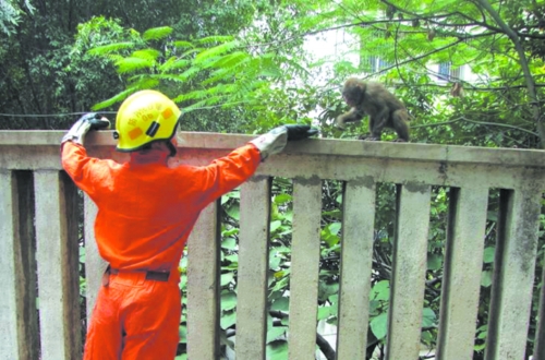 “119嗎?我們學(xué)校來了一只頑猴,請(qǐng)幫忙擒拿!”昨日上午,一只小猴子闖入攀枝花市第九中學(xué)校園內(nèi)“搗亂”,校方發(fā)現(xiàn)后立即報(bào)了警。經(jīng)過10多分鐘的較量,小猴子被消防官兵擒住后送往公園放生。