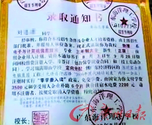 提醒:警惕冒牌錄取通知書