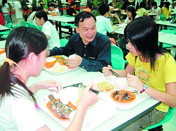 周其鳳常與學(xué)生一起在學(xué)校食堂進(jìn)餐,了解各方面情況。 資料照片
