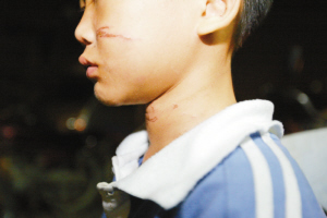 只要一碰淘淘的脖子,他就會(huì)往后縮。因?yàn)樗牟弊由嫌袔兹亢。淘淘說(shuō),是媽媽用繩子綁的,因?yàn)樗,媽媽生氣,所以這樣箍他。