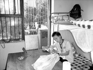 “我們在這里生活無憂,而且每天都還有志愿者和社會各界人士來探望!币覀ケ晦D(zhuǎn)移到成都中醫(yī)藥大學下汪家拐校區(qū),和小尹同安置在該校區(qū)的還有他學校的70多名高三同學。他住在一幢6層的宿舍樓,宿舍內(nèi)窗明幾凈,地面整潔,床鋪全是新的,枕頭也是新的,甚至書本也是新的!叭钦渲玫模瑫緞t是志愿者送的”。小尹坐在床邊的桌子旁,復習著功課。小尹說,在這里他不僅感受到了溫暖,更可以安靜迎考,他一定要考好,否則對不起幫助他們的人。