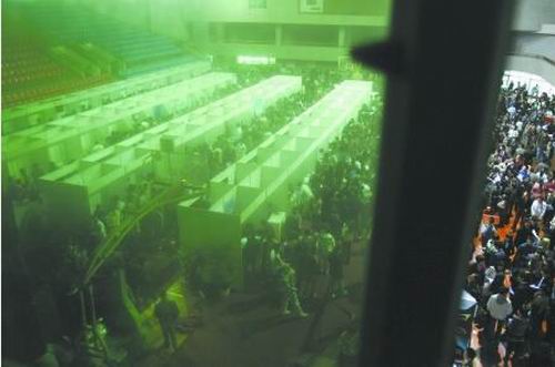雖然擁有高達9%的年經濟增長率,但國內商業(yè)、服務業(yè)所能提供的就業(yè)崗位仍不能滿足每年新增的就業(yè)需求。知識型勞力過剩的情況不能避免的出現(xiàn)了。求職中的學生們來不及考慮這些,他們西裝革履,他們擠出微笑,簡歷中的寸照與期待的面孔疊在一起,等待著命運的垂青。(程啟凌)