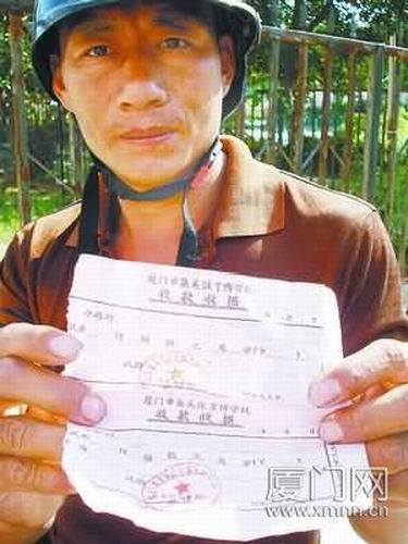 老李拿著兩張預(yù)交書(shū)費(fèi)收據(jù),欲退無(wú)門(mén)。