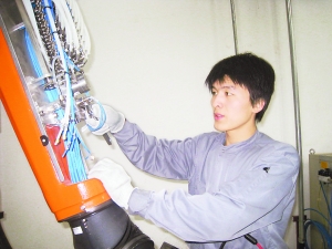 車間的流水線突然發(fā)出報(bào)警,機(jī)器人隨之停止工作。4月10日上午10時(shí),楊雪峰正坐在中控室監(jiān)視流水線運(yùn)轉(zhuǎn),面前的紅燈閃個(gè)不停。他拎起工具包,和師傅跑到報(bào)警機(jī)器前。一個(gè)兩米多高的機(jī)器人“罷工”了!斑@個(gè)機(jī)器人是專給車身噴漆的,它一停,整個(gè)流水線就不能運(yùn)轉(zhuǎn)了。”楊雪峰控制住心里的緊張,緊握扳手的右手有些微微顫抖,爬上流水線和師傅一起查找原因,“進(jìn)廠后就沒修過(guò)機(jī)器人這個(gè)大家伙,在師傅身后學(xué)了半年,這回終于派上用場(chǎng)了!