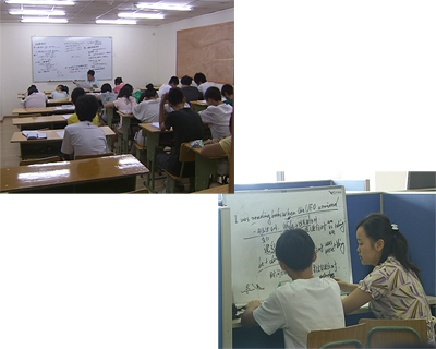 蔣校長(zhǎng)告訴記者,他們急于招聘老師是因?yàn)閰⒓优嘤?xùn)補(bǔ)習(xí)的學(xué)生人數(shù)增加太快,學(xué)校的規(guī)模因此也是一再擴(kuò)大。他們?cè)诔啥季陀薪?0個(gè)校區(qū),在校本部這里共有30間教室。