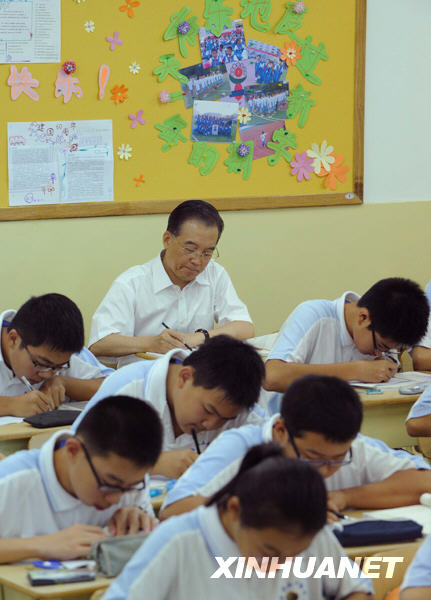 “溫總理來聽課,給我們的沖擊很大,這幾天學(xué)校里一直在討論這件事。大家都表示,要在下個(gè)教師節(jié),把一年來取得的成績(jī),用最樸實(shí)的方式向他匯報(bào)!蓖跣iL(zhǎng)說,現(xiàn)在全體教師都覺得肩上的擔(dān)子更重了!翱偫韾劢處,我們也深愛著教師這個(gè)職業(yè)!”