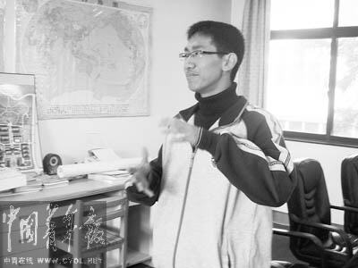 至少?gòu)耐獗砜,這個(gè)突然出名的男生與普通中學(xué)生沒(méi)什么差別。他有些挑食,比如從不吃茄子,但一頓至少要吃4兩米飯。他有著阿凡提式的大鼻子,架著一副400度的眼鏡。即使下雪天凍到感冒,他也只穿一件毛衣和一件敞開(kāi)的外套——因?yàn)榇┥厦抟潞螅悬c(diǎn)兒像企鵝,會(huì)束縛住他的手腳。