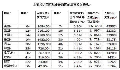 為了對中國教育競爭力在國際中的位置進行描述,我們選取了經(jīng)合組織國家和金磚四國(巴西、俄羅斯、印度、中國)作為比較對象。