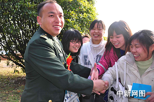 中新網(wǎng)南昌3月26日電(王劍 張曉朦) 3月26日,華東交通大學“日新論壇”上大學生們討論的焦點不是“周董”,也不是NBA的比賽,而是“槍王”何祥美。此前一天,“何祥美同志先進事跡報告會”在該校舉行,何祥美被現(xiàn)場女大學生高呼“英雄哥哥”并索要簽名。
