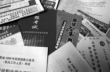 已經(jīng)在某企業(yè)單位工作一年的黃中(化名)則是考公務(wù)員大軍中的一員,他報(bào)考了今年河南省直機(jī)關(guān)公務(wù)員。為了“提高”自己,需要到社會(huì)上的培訓(xùn)班“補(bǔ)補(bǔ)課”。他報(bào)了一個(gè)考前輔導(dǎo)班,花費(fèi)了1100多元。據(jù)說,還有沖刺班、面試班、保過班等各種名目,如果再參加,還需要花費(fèi)數(shù)千元!皡⒓舆@樣的考前輔導(dǎo)班是否有用?”面對記者的詢問,黃中一臉漠然,“錢是花了,但心里面沒有底!