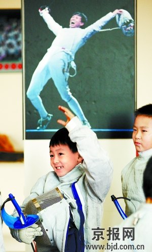 隨著中國(guó)運(yùn)動(dòng)員仲滿在北京奧運(yùn)會(huì)上成功摘金,服裝帥氣、動(dòng)作刺激、講究?jī)?yōu)雅的擊劍運(yùn)動(dòng),讓孩子們看得“心癢癢”。于是,奧運(yùn)會(huì)閉幕沒多久,東城體校便從天津擊劍隊(duì)請(qǐng)來(lái)專業(yè)教練,辦起了北京首個(gè)專門面向少年兒童的業(yè)余擊劍班。沒有大張旗鼓的宣傳,教練們?cè)趨^(qū)內(nèi)的多所小學(xué)里轉(zhuǎn)了一圈兒,200多名“小劍客”便主動(dòng)找上門來(lái)。