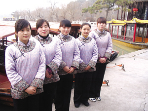 在小崔邀請下,兩個船娘還為全國的觀眾合唱了揚州小調(diào)《楊柳青》選段,博得了觀眾長久的掌聲。最后,小崔做起了“瘦西湖船娘廣告”:“大學生船娘不僅歌唱得好,而且笑容甜美。”同時不忘給出“總結”:大學生船娘是“高級導游”,是在就業(yè)難的大背景下,大學生轉變就業(yè)觀念的一例。