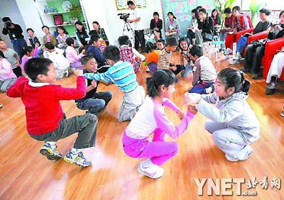在青春期健康教育課堂交流會(huì)前,小學(xué)生們進(jìn)行了熱身游戲 攝影/陳柏