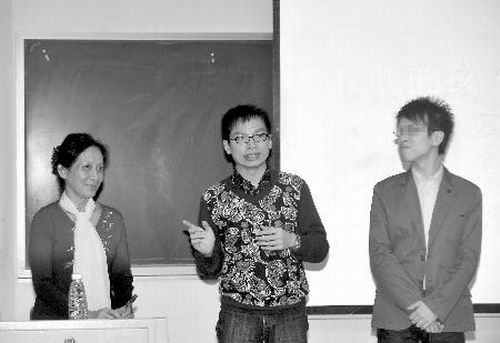 昨晚8時許,四川師范大學(xué)大學(xué)生心理健康教育服務(wù)中心和愛白成都青年同志活動中心邀請吳幼堅、鄭遠濤及其男友來到校區(qū),為大學(xué)生聯(lián)手上了一堂同性戀話題的課。