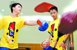 在市21中學(xué)生心理輔導(dǎo)室,學(xué)生在打沙包發(fā)泄情緒。 邱偉榮 攝