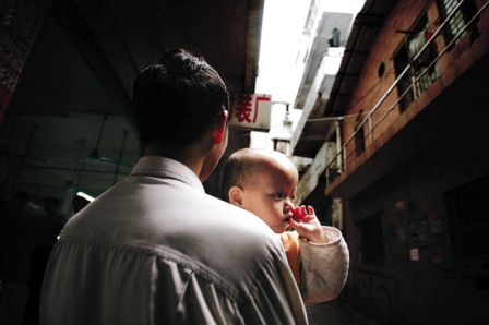 蘇屋村中間一棟六層民房的第四層有黃建軍的家,僅六七平方米的空間里,有房間有廁所有廚房。兒子的意外身亡,是對兩夫婦最大的打擊。9年來,他們幾乎把所有的心血都傾注在孩子身上,“希望他能做個城里人,讀好書,不要像我們一樣只能做粗活”。然而,黃建軍對現(xiàn)實的“殘酷”也有著清醒的認(rèn)識,“其實我們拿不到戶口,不可能像城里人一樣享受各種福利,上公立學(xué)校的贊助費我們都交不起”。