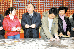 重慶市領(lǐng)導(dǎo)和留校大學(xué)生一起包餃子團(tuán)年(圖)