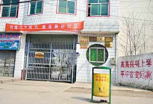 在位于該縣城北部的遂平縣實驗小學門口,記者看到,該校大門緊閉,有人在大門里面坐著,不時警惕地注視著外面來往的人。校門口的一側(cè)掛著“五星級學!薄ⅰ肮芾硪患墝W!钡扰谱。大門外的墻上寫著“高高興興上學 平平安安回家”的大紅標語,但卻已斑駁了。