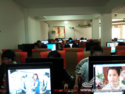 記者跟著小胡走到一處不起眼的地下室門口,他指著里面說,這里就是學校的網(wǎng)吧。記者走進網(wǎng)吧內(nèi)看到,里面3個房間連在一起,粗略一數(shù),大約有120余臺電腦,只有10余臺電腦空閑。許多學生一邊抽著煙,一邊聊天、看電影或玩著網(wǎng)絡游戲,時不時蹦出幾句粗口。