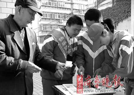 濟(jì)南市育園學(xué)校是一所專門接收弱智兒童的特教學(xué)校。校長楊青青介紹,賣報(bào)活動(dòng)始于職教班數(shù)學(xué)老師杜桂芝的一次賣報(bào)紙的實(shí)驗(yàn)課。后來考慮到智障孩子要面臨謀生、就業(yè)的問題,學(xué)校就把“賣報(bào)紙”設(shè)為職教班的校本課。四年下來,學(xué)生們?cè)谫u報(bào)中運(yùn)用數(shù)學(xué)知識(shí),溝通、計(jì)算能力得到顯著提高,“一直堅(jiān)持賣報(bào)的房琪同學(xué)患有腦癱,通過賣報(bào)受到啟發(fā)后,他現(xiàn)在每個(gè)周末都去廣場(chǎng)賣菠蘿,最好的時(shí)候一天能收入幾百元!