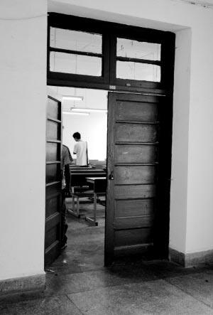 中午1點左右,記者找到2004級男生宿舍樓。在3樓1間宿舍剛好碰到一名和喬榮、胡平是同班同學的男生。但喬榮和胡平都不住這間宿舍。