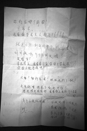 事發(fā)后,孩子的家人在其書包里發(fā)現(xiàn)一張類似“遺書”的日記!斑z書”上清楚地寫著:“我被記過了,寫2000字檢討,罰50元錢,找家長,之后就是一個(gè)字——嗚~~(哭)why(為什么)?because(因?yàn)?我出校門,陳池開車追我,我跑到風(fēng)和日麗小區(qū)6樓上了,他一直等我……變成了這個(gè)死樣!明天間操,我們站前面,陳老師在上面罵我們,這下全校都認(rèn)識了,丟大人了!”