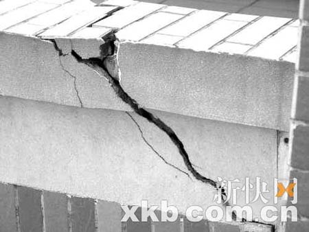 記者隨即和鄧蛟勇來(lái)到位于綜合樓一處外墻爆裂的地方,記者指著呈“幾”字形長(zhǎng)約5米的裂縫問(wèn):“這樣的裂縫是否可以避免?”鄧副科長(zhǎng)摸著下巴思考了很長(zhǎng)時(shí)間,說(shuō)出了兩個(gè)字“可以”,接著他解釋說(shuō),這里沒(méi)有做滲積處理。接著記者又問(wèn):“這樣的情況是不是正,F(xiàn)象?”他沒(méi)有回答,繞開記者走到一邊。記者繼續(xù)追問(wèn)這個(gè)問(wèn)題,他解釋可能是附屬結(jié)構(gòu)有問(wèn)題,但設(shè)計(jì)、質(zhì)量都有保證。記者反問(wèn):“那是不是附屬結(jié)構(gòu)的設(shè)計(jì)、建設(shè)過(guò)程中有問(wèn)題?”鄧蛟勇兩次擰開他手中的純凈水喝,沒(méi)有回答問(wèn)題,扭頭走開了。