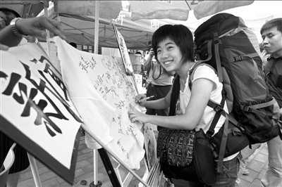 在蔣方舟為自己準備的上學裝備中,一整套自己寫的書成了必備品!耙苍S以后接受采訪時要用,以防不備吧。”盡管一再說自己對新生活誠惶誠恐,但她顯然要比更多同齡人見過大世面。在新聞系為新生準備的T恤上簽名時,蔣方舟也完全沒有像其他新生那樣羞澀。