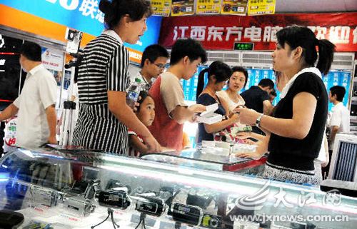 電腦、手機(jī)、MP3已經(jīng)成為目前一些家庭經(jīng)濟(jì)條件較好的大學(xué)生的“新三樣”,成為學(xué)生新學(xué)期的新裝備。某商場(chǎng)的一名導(dǎo)購(gòu)員告訴記者,開(kāi)學(xué)前的這段時(shí)間是數(shù)碼產(chǎn)品的銷售旺季,各商家均紛紛采取各種促銷手段來(lái)吸引學(xué)生群體。正在南昌市一電子數(shù)碼城購(gòu)買(mǎi)MP3的大一學(xué)生小王告訴記者,考上大學(xué)時(shí)父母就答應(yīng)給她買(mǎi)手機(jī)和MP3,今天和媽媽一起出來(lái)挑選。