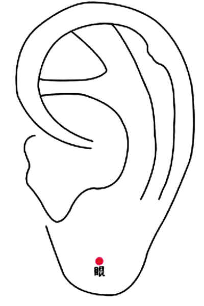圖①按揉耳垂眼穴,腳趾抓地