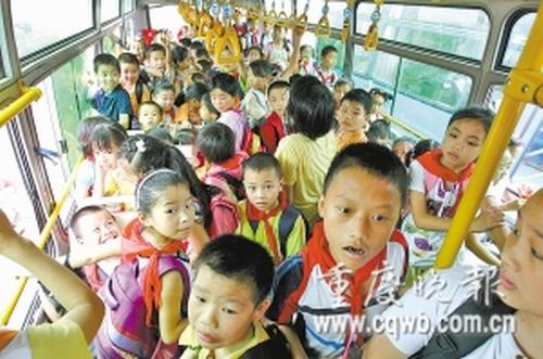 為解決進城務(wù)工人員孩子的行路難,渝北區(qū)仁睦小學(xué)從“對口幫扶學(xué)!钡谌龑嶒炐W(xué)租來一輛校車,放學(xué)時負責(zé)送師生們回家。然而,他們卻忽視了安全——準載50人的校車竟然實載了120人!