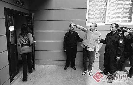 王同學(xué)被押回小區(qū)指認(rèn)偷盜現(xiàn)場(chǎng)。 江洋 攝