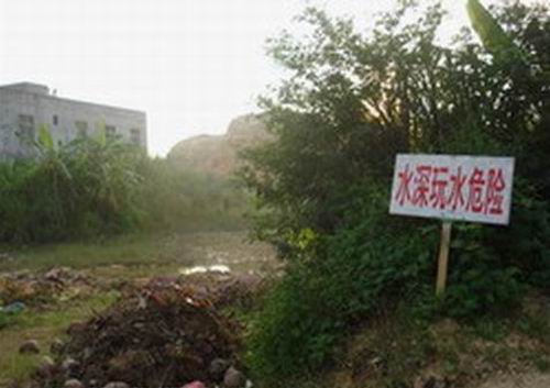 出事地點距魏某租住的民房不足100米,該水塘(爛泥潭)寬30米,長100米,水深2.8米。據(jù)介紹這里原是一個小山坡,后來有人在這里挖土,日久便形成了這個水塘。出事后,有關(guān)部門已在水塘周圍豎立了安全警示牌。(鄭邦京)