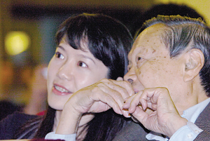 應(yīng)華英文教基金會之邀,享譽(yù)世界的著名物理學(xué)家、諾貝爾獎獲得者楊振寧博士昨日(10月27日,下同)攜少妻翁帆走進(jìn)東大。這回楊振寧說起了物理學(xué)的誘惑,談起中國人與諾貝爾,甚至為老朋友吳健雄叫屈,卻避口不談“翁帆和我”。然而,86歲的老先生講到盡興處還是說漏了嘴:我24小時保持思考,有時睡到12點(diǎn)忽然像孩子似的對翁帆說我想出來了。