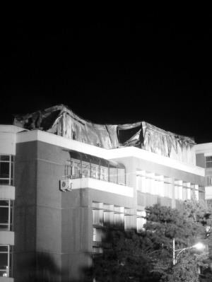 昨夜10時(shí),記者趕到中國(guó)農(nóng)業(yè)大學(xué)東校區(qū)南門。走到教學(xué)區(qū)內(nèi),樓間的空氣中彌漫著大量的濃煙。此時(shí),食品科學(xué)與營(yíng)養(yǎng)工程學(xué)院教學(xué)樓周圍50米范圍都拉起了警戒線,十余輛消防車警燈齊閃,數(shù)十名消防隊(duì)員正拖著水管緊急向樓頂噴灑著水柱。該教學(xué)樓高五層,樓頂處的火光依稀可見(jiàn)。至晚10時(shí)10分,明火被撲滅,大火將頂層建筑部分燒得歪歪斜斜,濃煙在夜空中形成了一道煙柱。